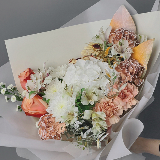 - Larger bouquet but may not include premium flowers such as Peonies, Ranunculus.