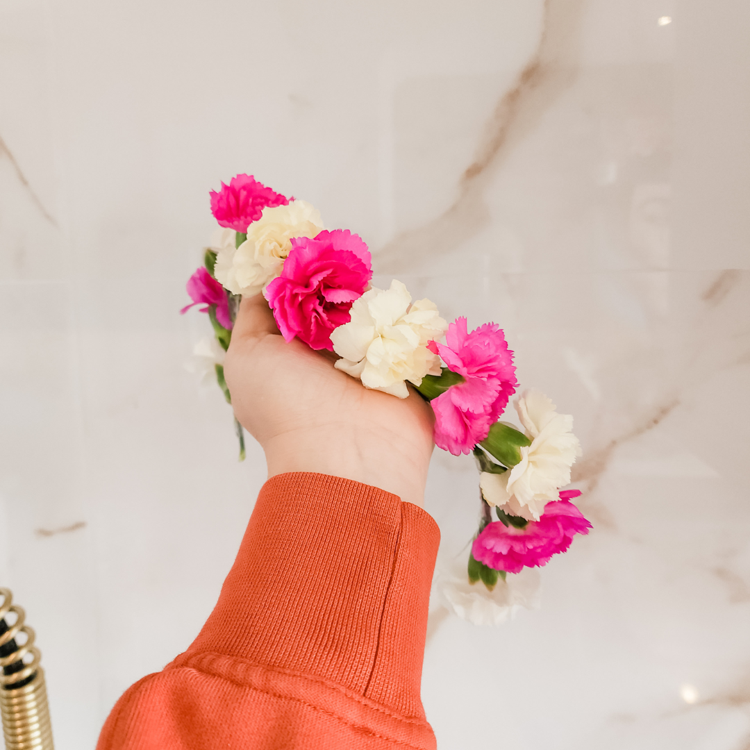 Create a memorable 'wow' moment with our unique Carnation Flower Crown Activation.