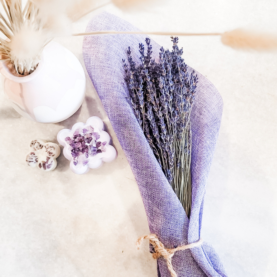 Add this pretty bouquet of dried lavender to a vase and enjoy the rich fragrance of lavender or use stems for crafts and decor! Each bouquet is gently wrapped and comes with 30 stems.
