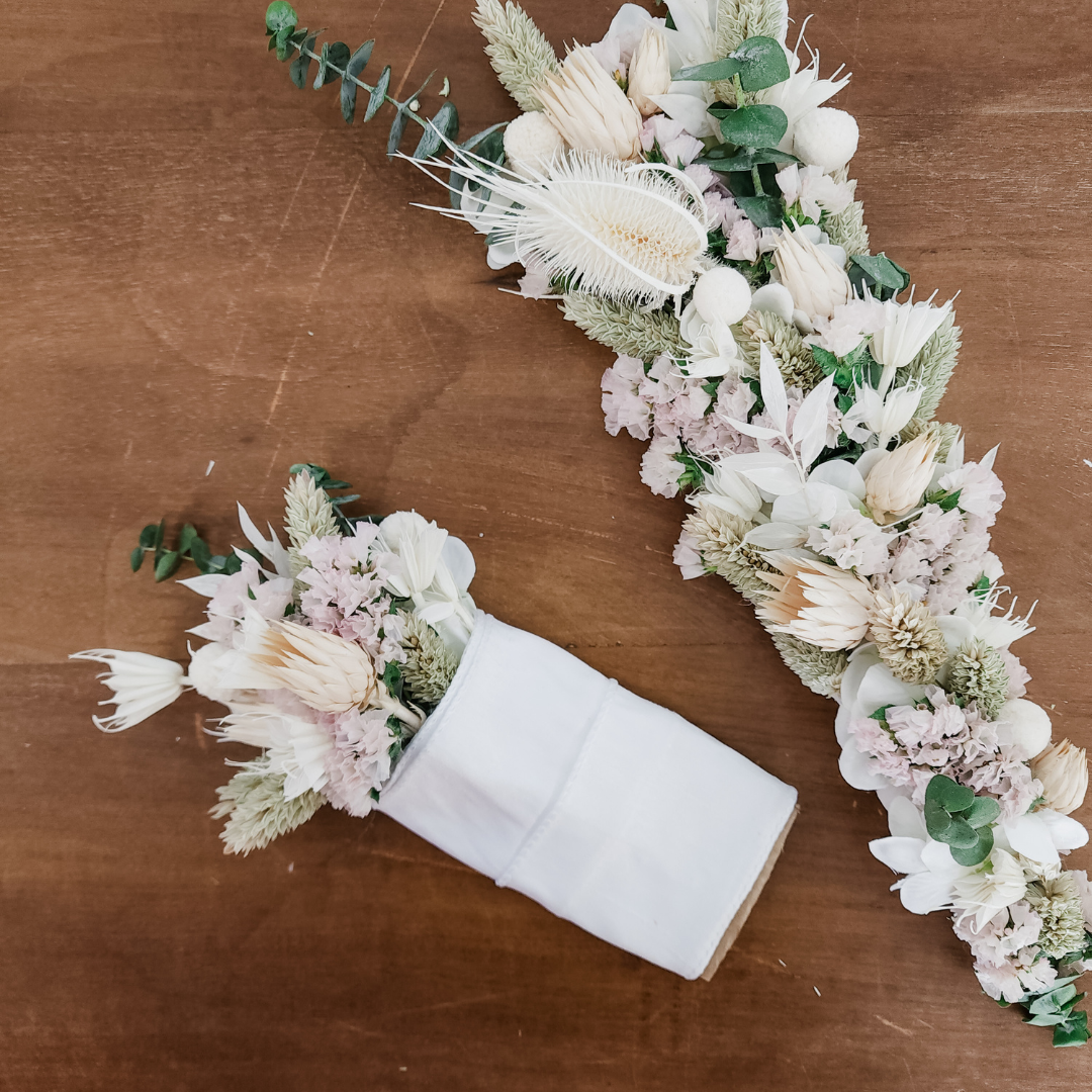 This piece can be customized by size & floral colours. We use only dried/preserved florals for this piece.