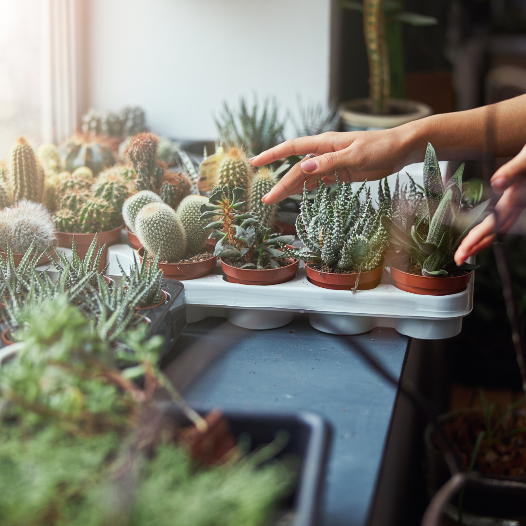 Light: Cacti thrive in bright filtered light. Place them in an area that receives some direct or indirect sunlight to keep them in prime health and prevent stretching.