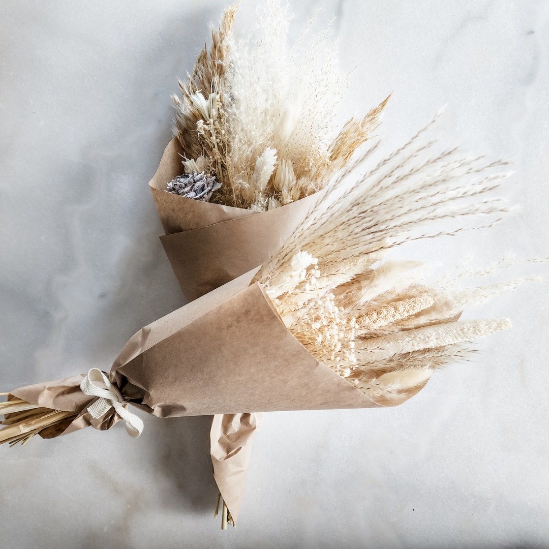 Each bouquet is made by hand in our Toronto studio using only premium preserved & dried mixed florals like pampas grasses, bunnytails, ruscus, phalris, palms and other elements.