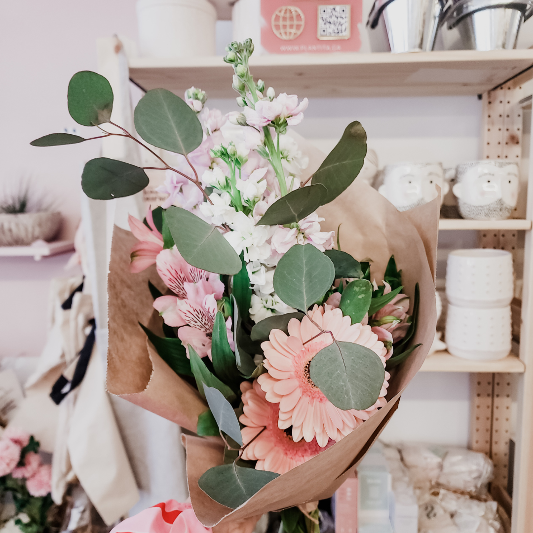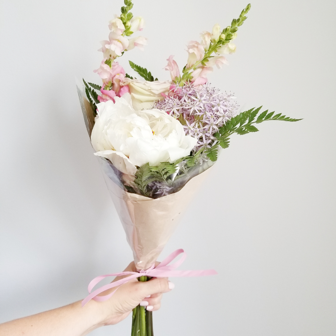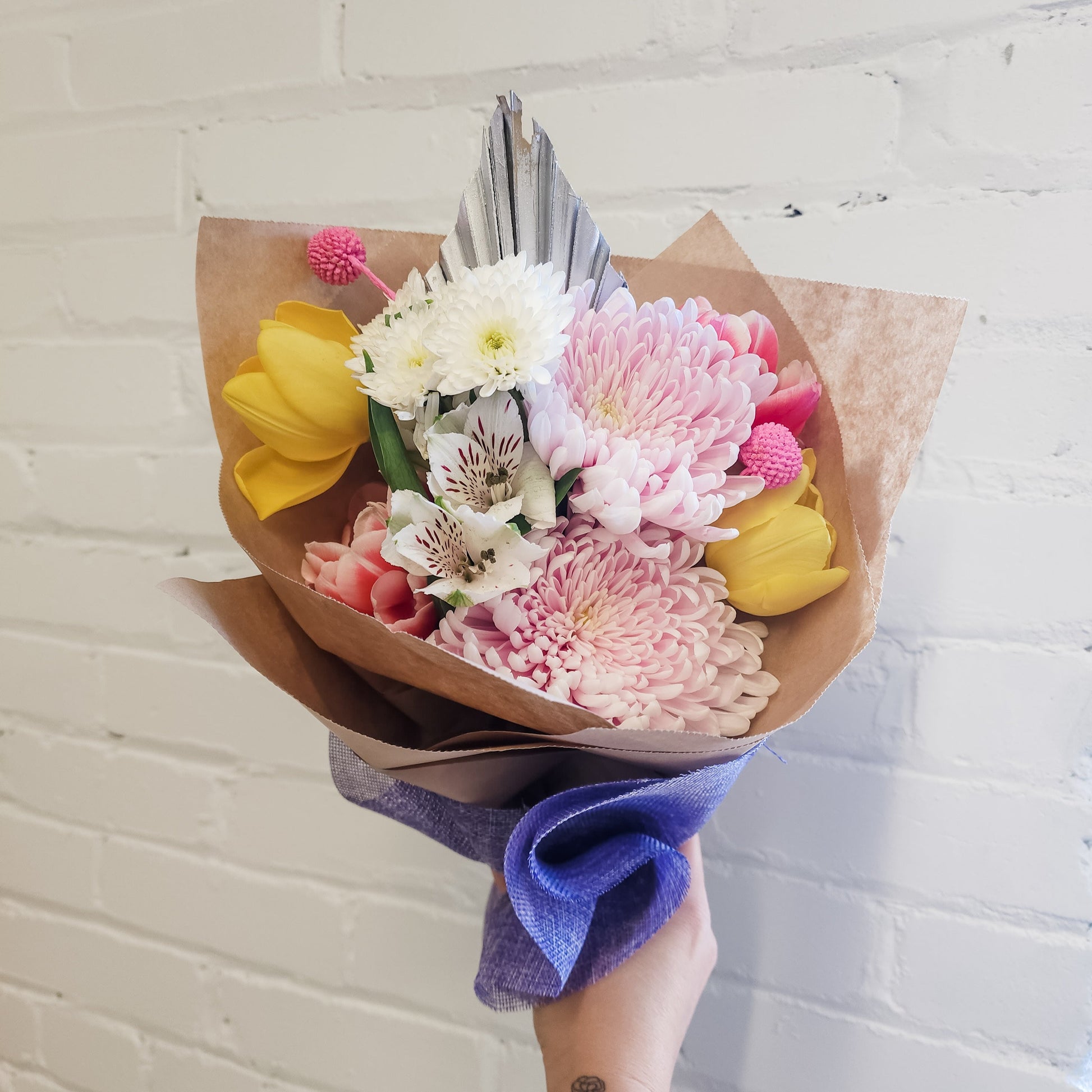 Our Mini Bouquet includes a selection of in season florals perfectly paired together with lush greenery.