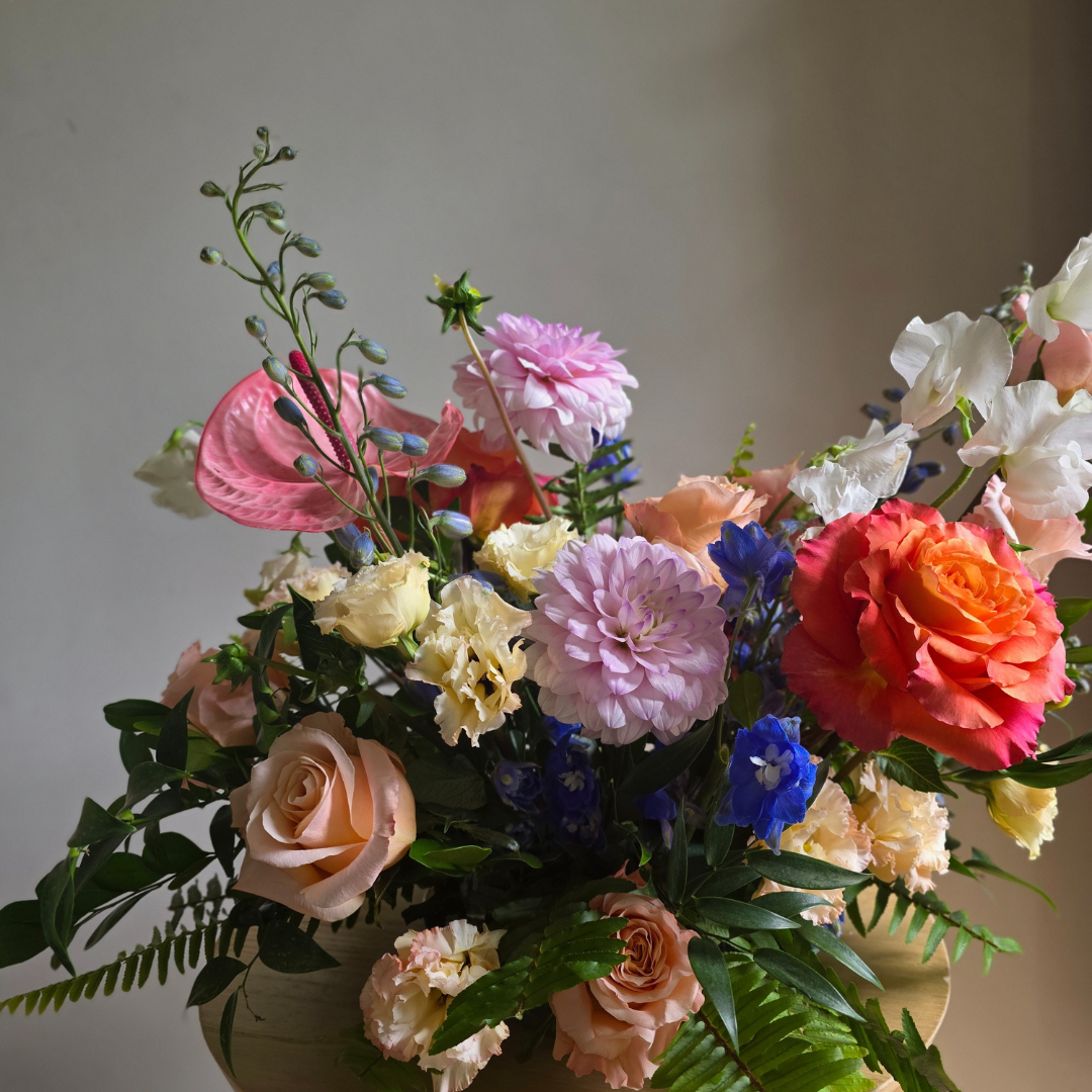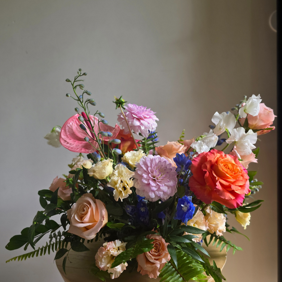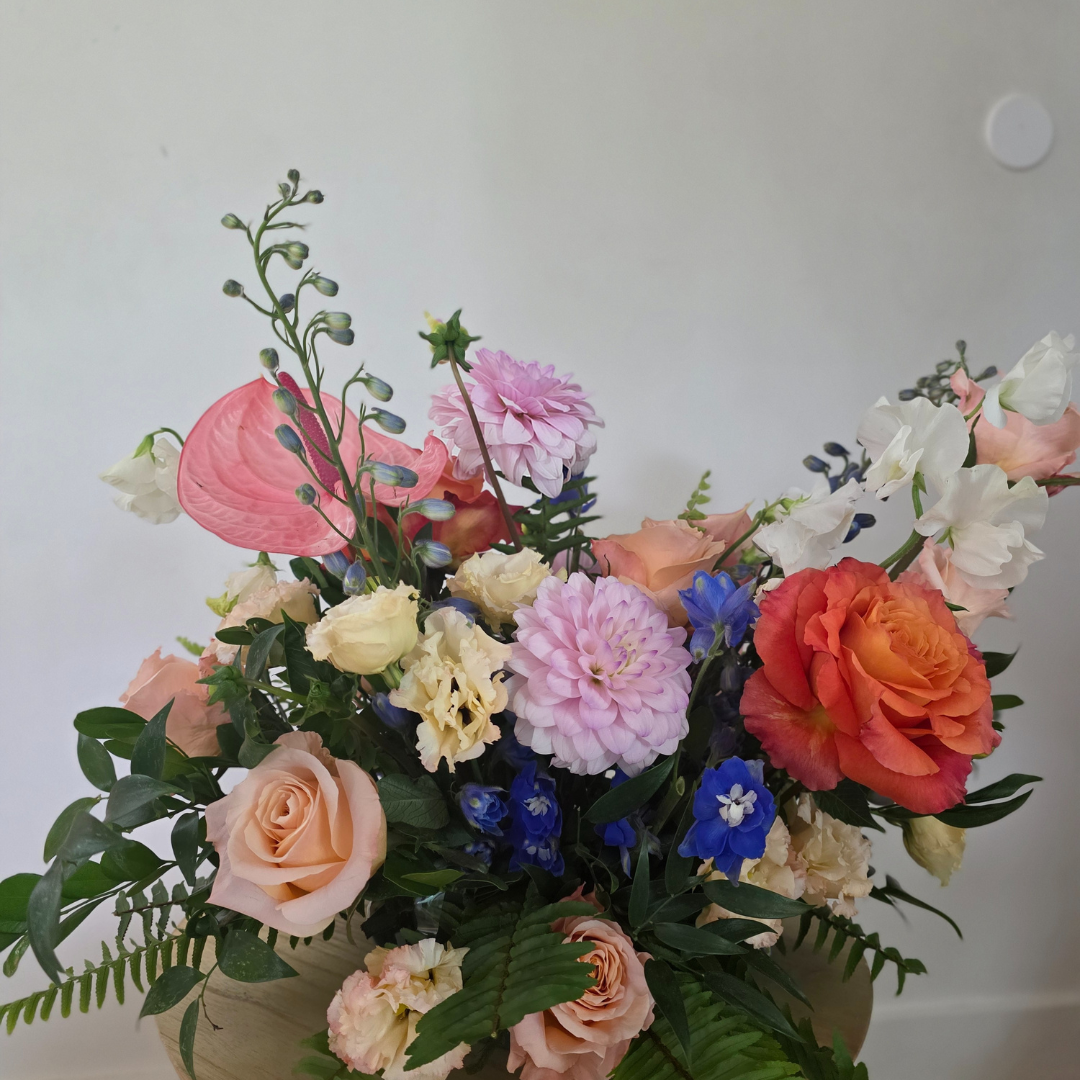 Elevate your space with this Summer Garden Centrepiece, featuring a refined blend of lush greenery and delicate pastel blooms. Designed to evoke the serene beauty of a summer garden, it brings a subtle yet elegant touch to any setting, perfect for sophisticated gatherings or enhancing everyday ambiance.